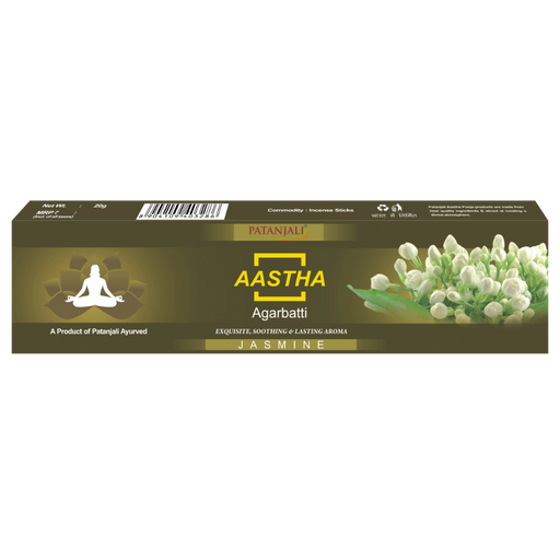 PatanjaliDescriptionPatanjali Aastha Incense Sticks in Jasmine fragrance are crafted to release the soothing and uplifting aroma of blooming jasmine flowers...