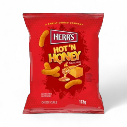 Herr'sHerr’s Hot ’n Honey Cheese Curls 113 g are crunchy, puffed corn snacks coated with bold cheddar cheese and a hint of sweet honey with a spicy kick....