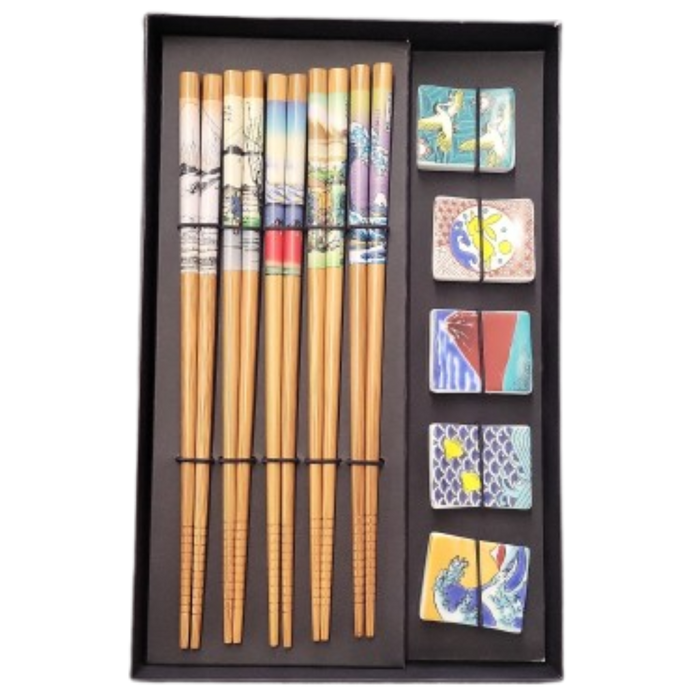 Jade Temple - Essstäbchen Set mit Keramik Bänkchen (5 Personen)