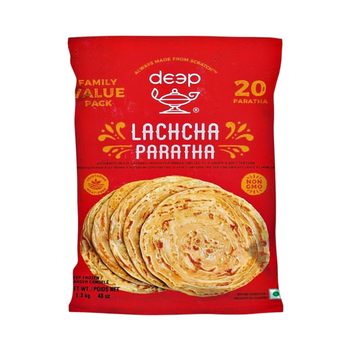 DeepFrozen Deep Lachcha Paratha (20pcs) 1.3kg is a traditional Indian layered flatbread made with wheat flour, folded multiple times to achieve its sig...