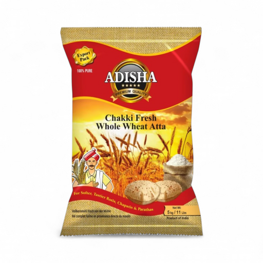 AdishaEnjoy soft, wholesome rotis with Adisha Chakki Fresh Whole Wheat Atta. Stone-ground from premium quality wheat, this flour retains its natural nutr...