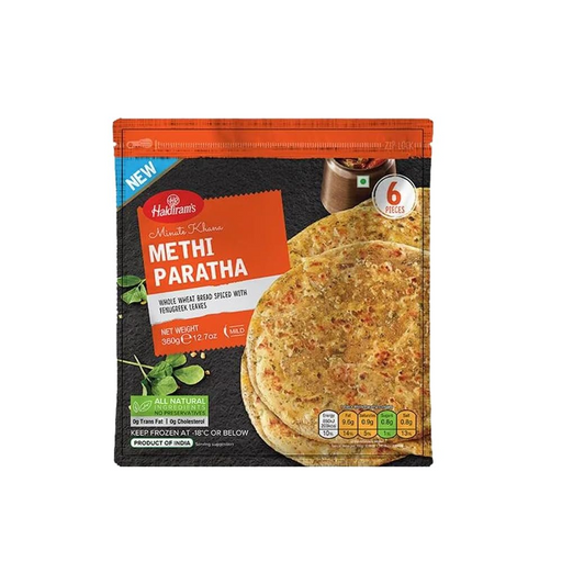 Haldiram'sFrozen Haldiram’s Methi Paratha (6pcs, 300gm) is a traditional Indian flatbread made with whole wheat flour and fresh fenugreek (methi) leaves. Sof...
