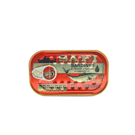 Safi Sardines in Vegetable Oil 125g are premium quality sardines packed in mild vegetable oil to preserve their freshness, rich flavor, and nutriti...