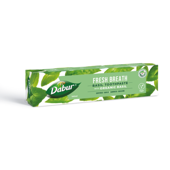 Dabur Fresh Breath Toothpaste with Organic Basil combines Ayurvedic wisdom with modern oral care for a naturally refreshing brushing experience.