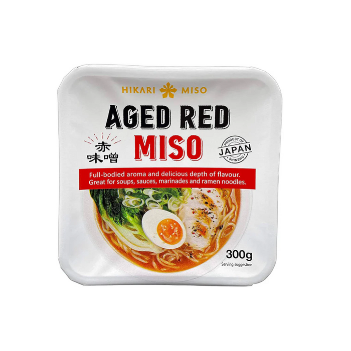 Hikari Miso – Aged Red 300gm is a premium Japanese fermented soybean paste with a rich, robust flavor and deep umami. Aged longer than white miso, it is ideal for soups, stews, marinades, and sauces where a stronger, savory taste is desired.